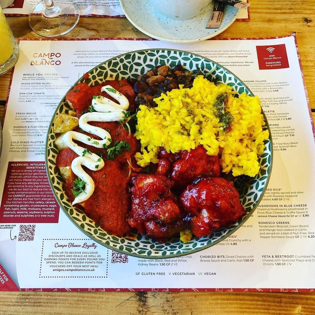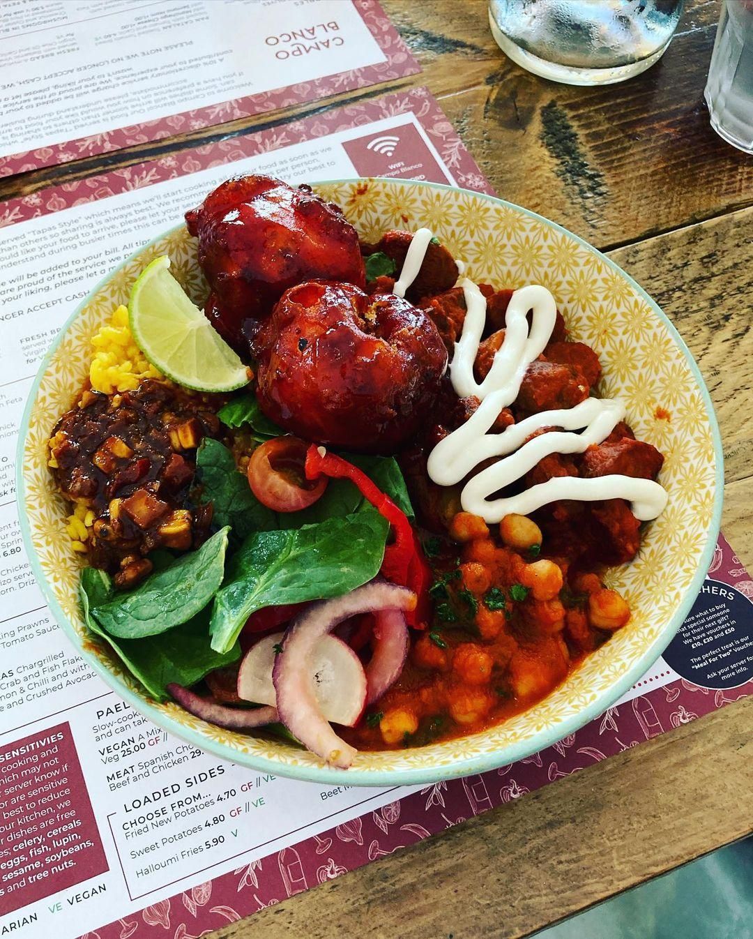 @campoblanco have started opening for lunch, so we popped over to try one of their tapas bowls. At first glance it didn’t look like there was a lot of options for us, but cross referencing with the main menu we discovered that the chickpeas, mushrooms, and a couple of other dishes can be made vegan on request. We easily got a very good and filling feed! We’ll definitely be back 💚