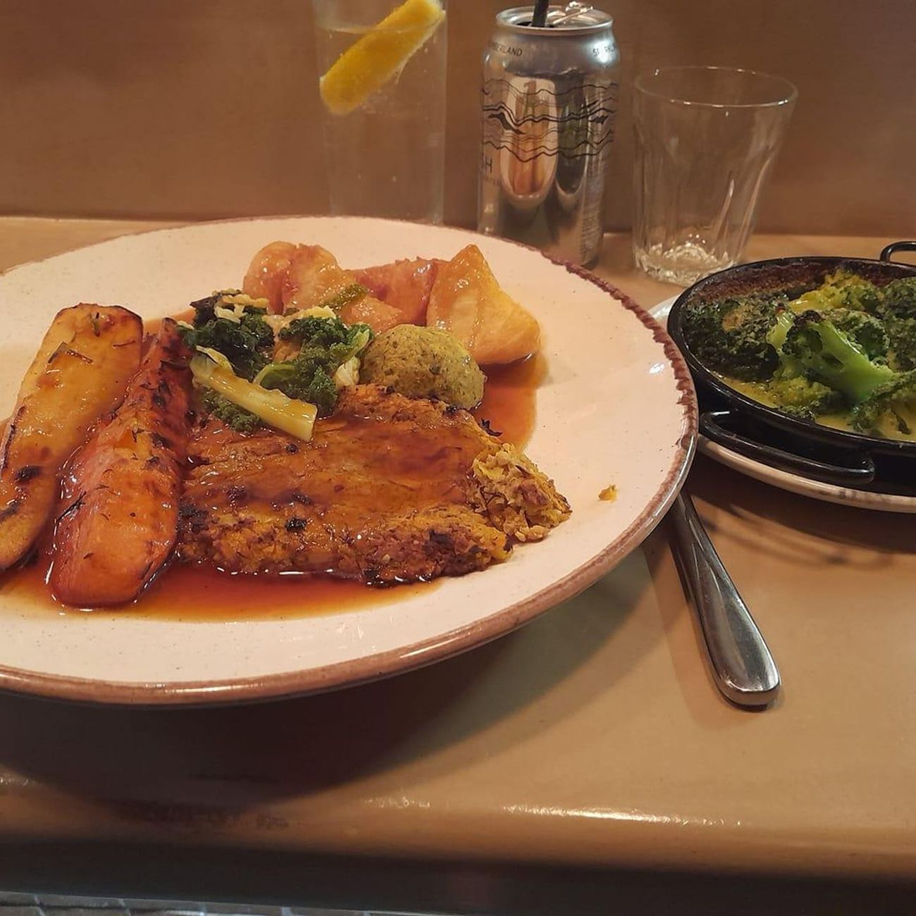 We went to Dokes for a vegan roast. The roast vegetables and greens were really good.The broccoli was perfectly cooked but came in a sauce I didn't like. The nut roast was a bit sloppy but tasted good. A bit pricier than Place and Palette but worth a visit!