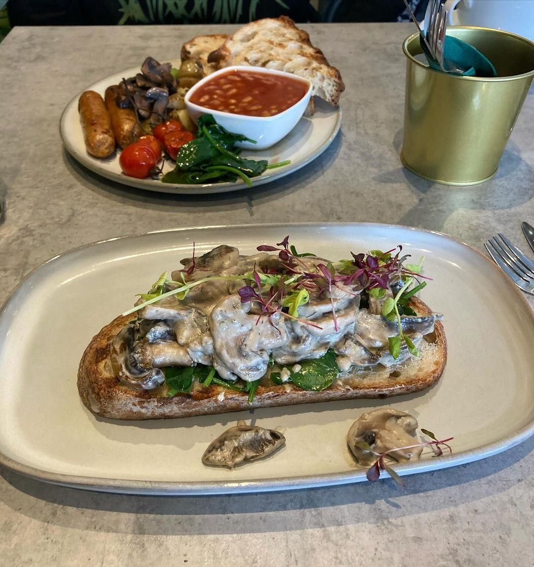 @milkmieluk have a fancy new menu! Quite a few good vegan options, both sweet and savoury. We tried the shroom toast and the avocado smash. Both were lovely though mushrooms were especially delicious.