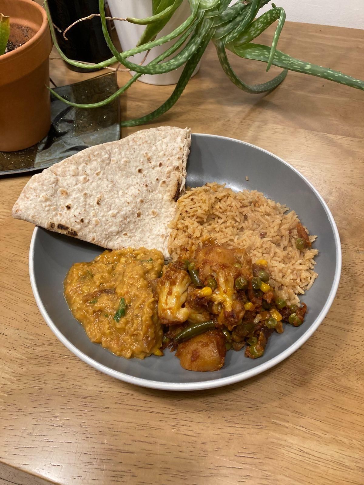Proper hearty and wholesome food, beautifully spiced, even the rice was delicious, using all recyclable packaging, can't fault it at all. All her veggie curries are vegan and they were all lush. We had the chickpeas, dahl, and mixed veg today, and mixed veg curries normally aren't my thing but hers was divine!