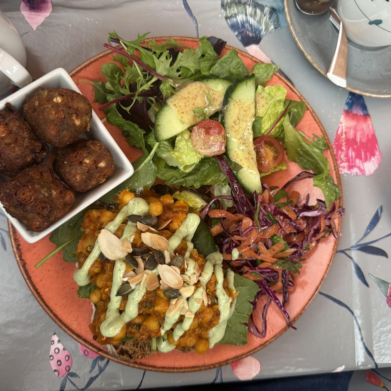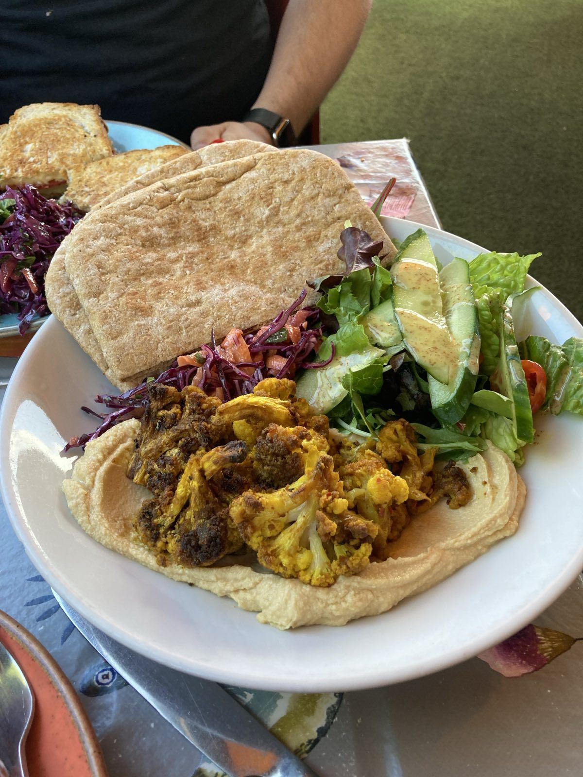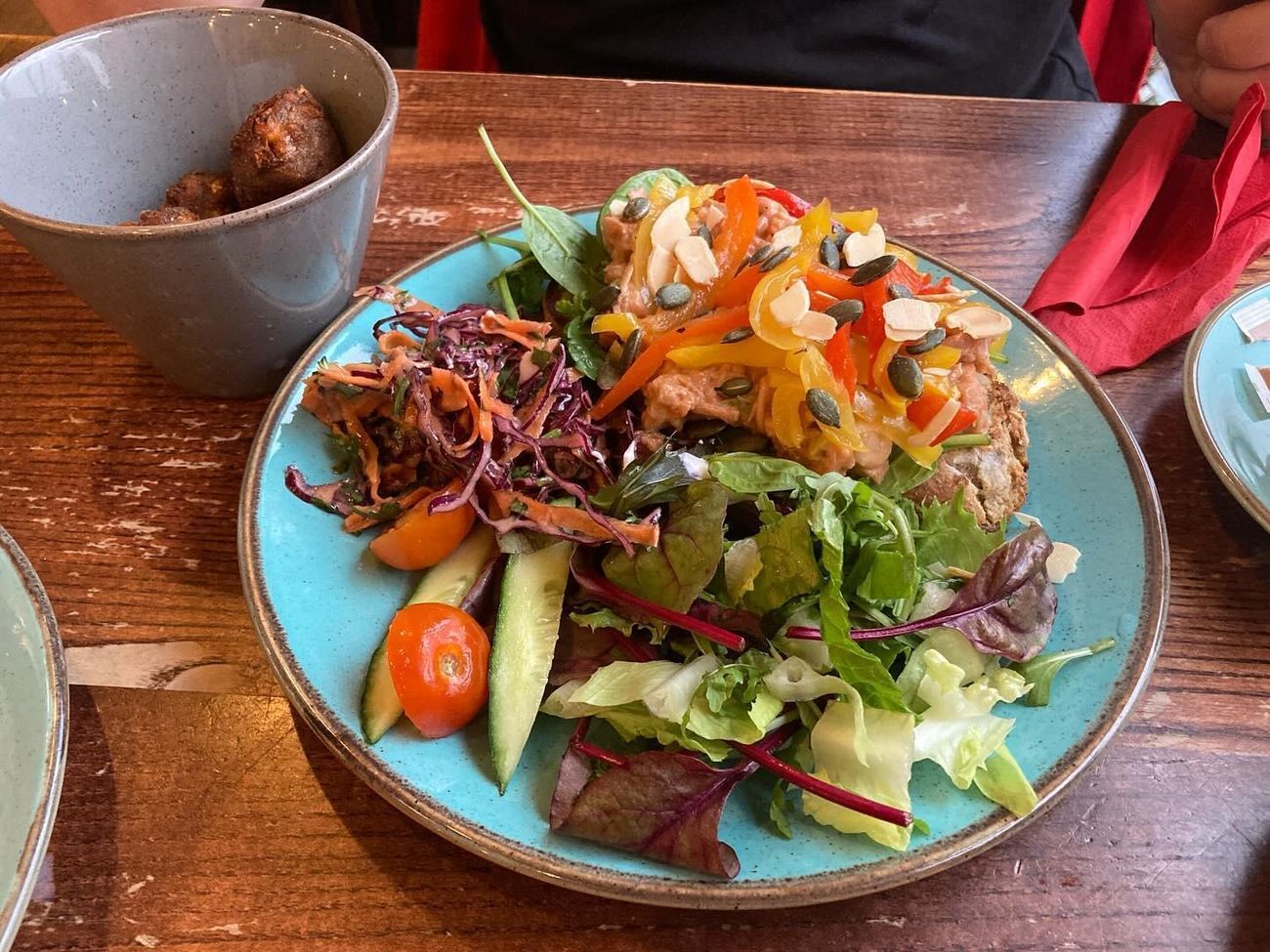 New fave! Cauliflower and vegan halloumi salad from @coffeesackprestwich- you have to ask for vegan halloumi, which comes nicely crisped up. Yum!