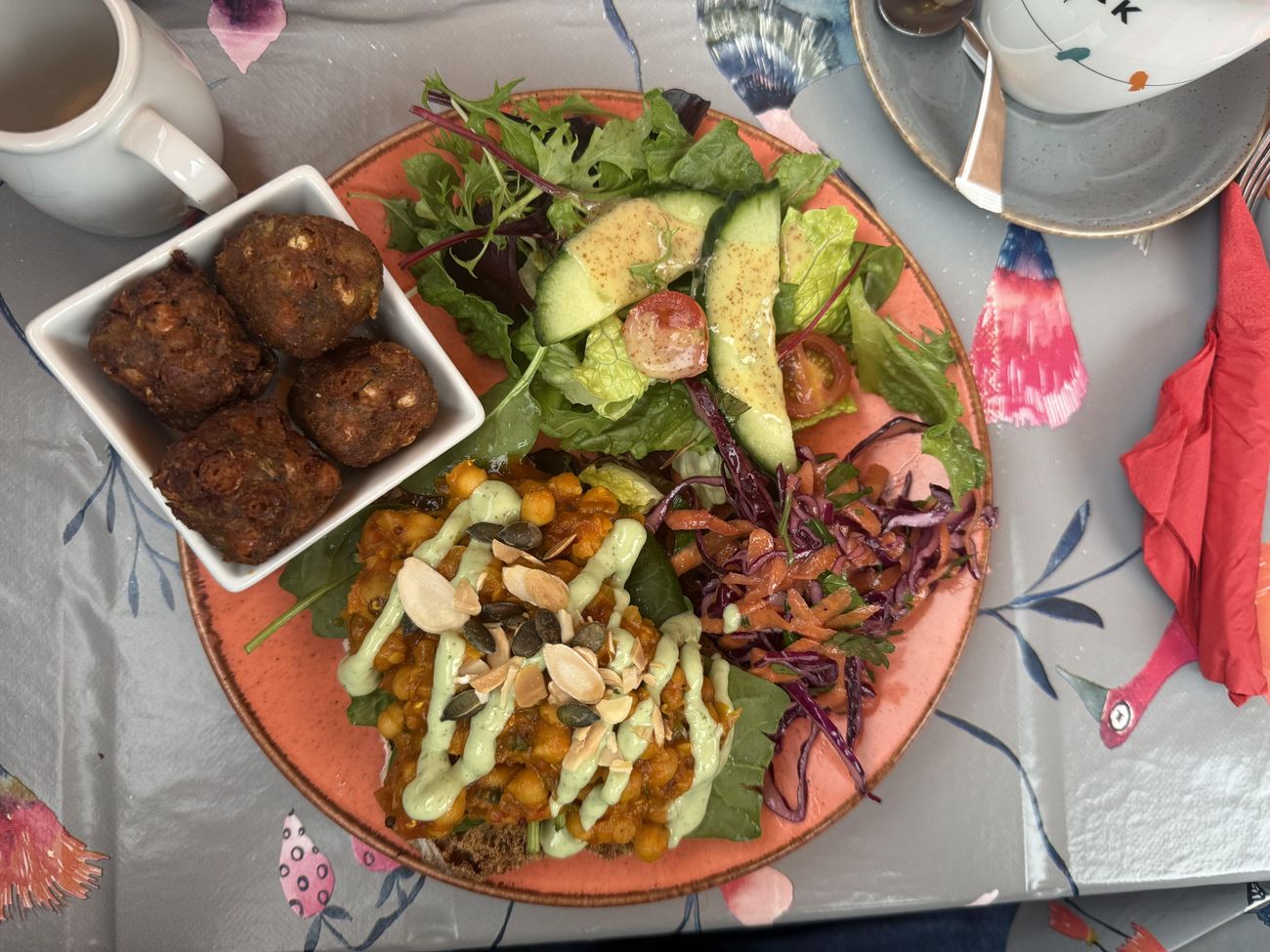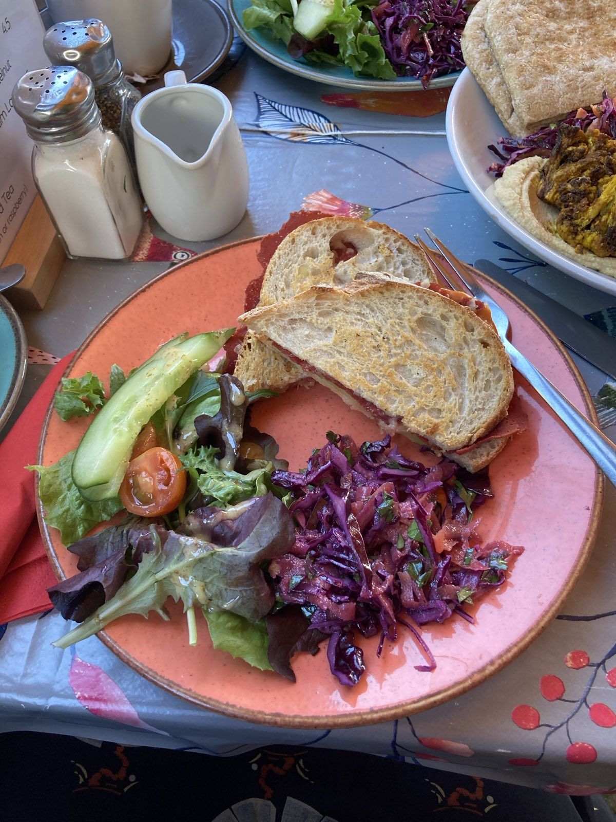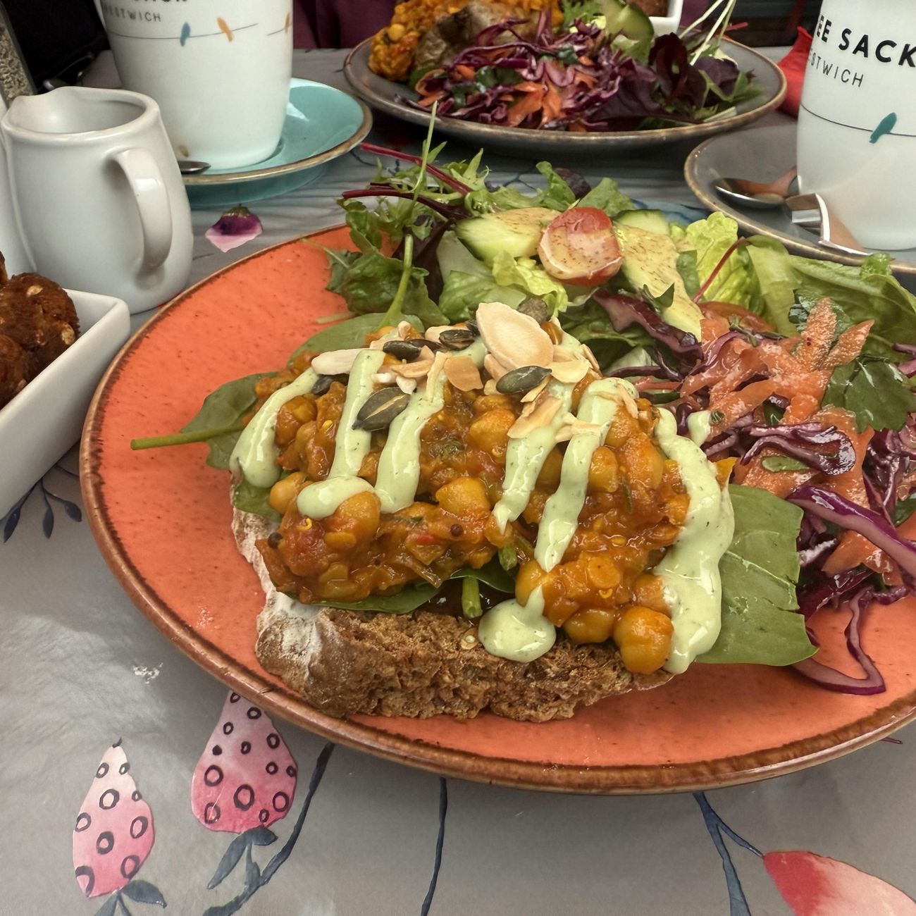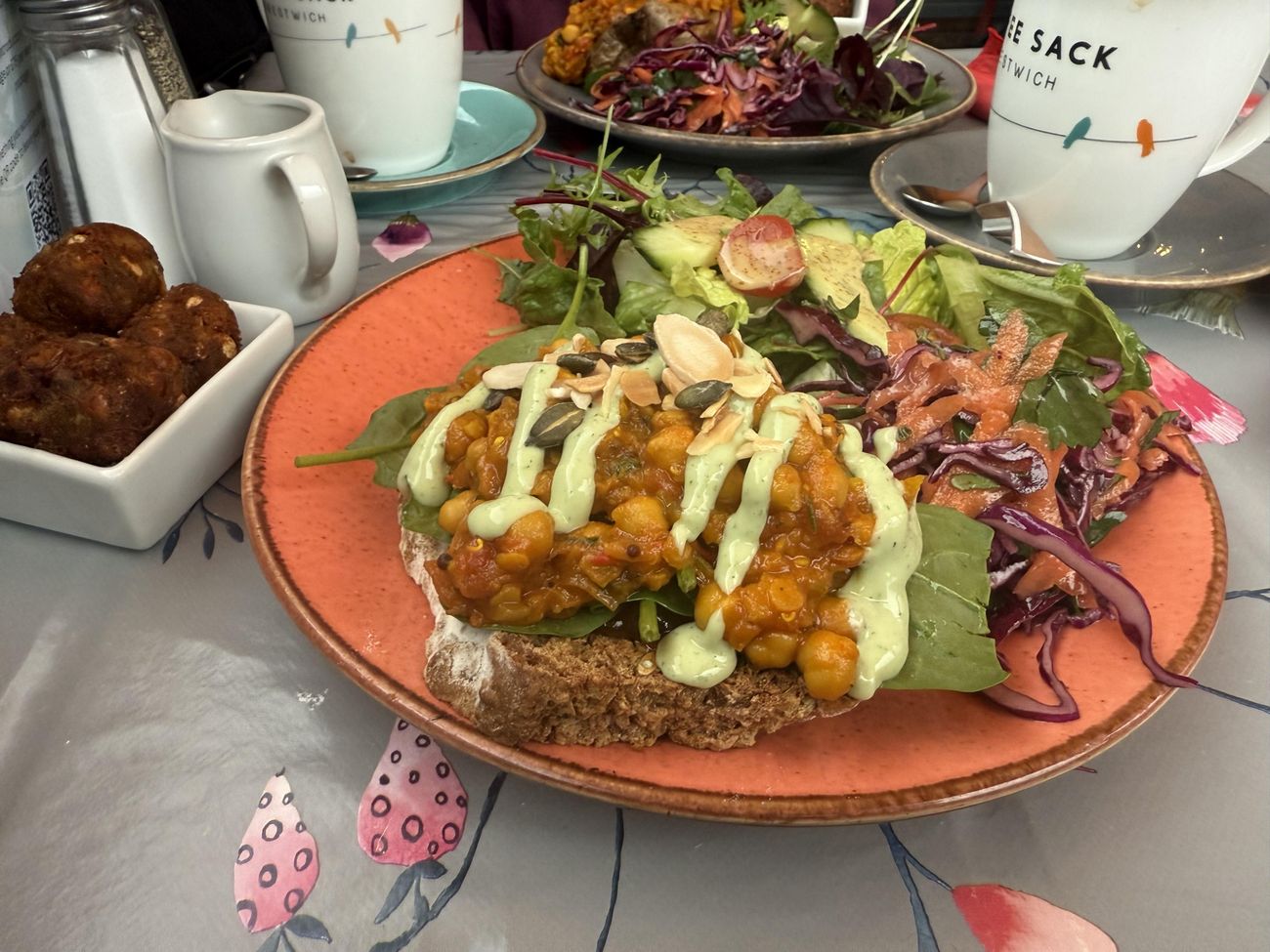 We had lunch at the Coffee Sack today - their new spiced chickpea salad stuff is lush! They've got a full vegan menu (you gotta ask for it) and the coffee and cakes are always A++ too. Highly recommend checking them out