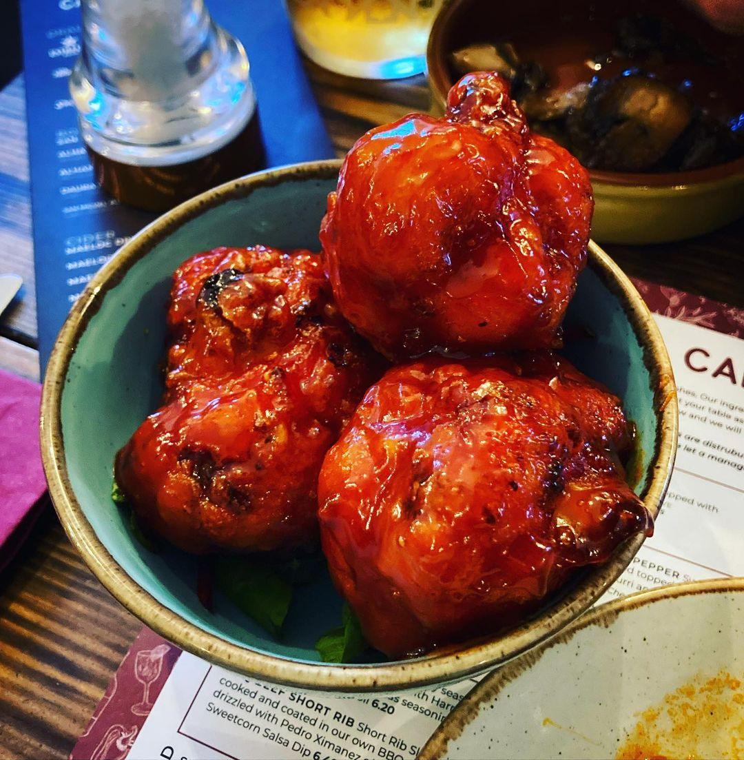 Tonight we ate at campo blanco in whitefield. The vegan options were great! We had hummus and flatbread, cauliflower wings (the nicest I’ve ever had!) garlic mushrooms, sticky sprouts and Patata‘s Bravas. Would highly recommend.