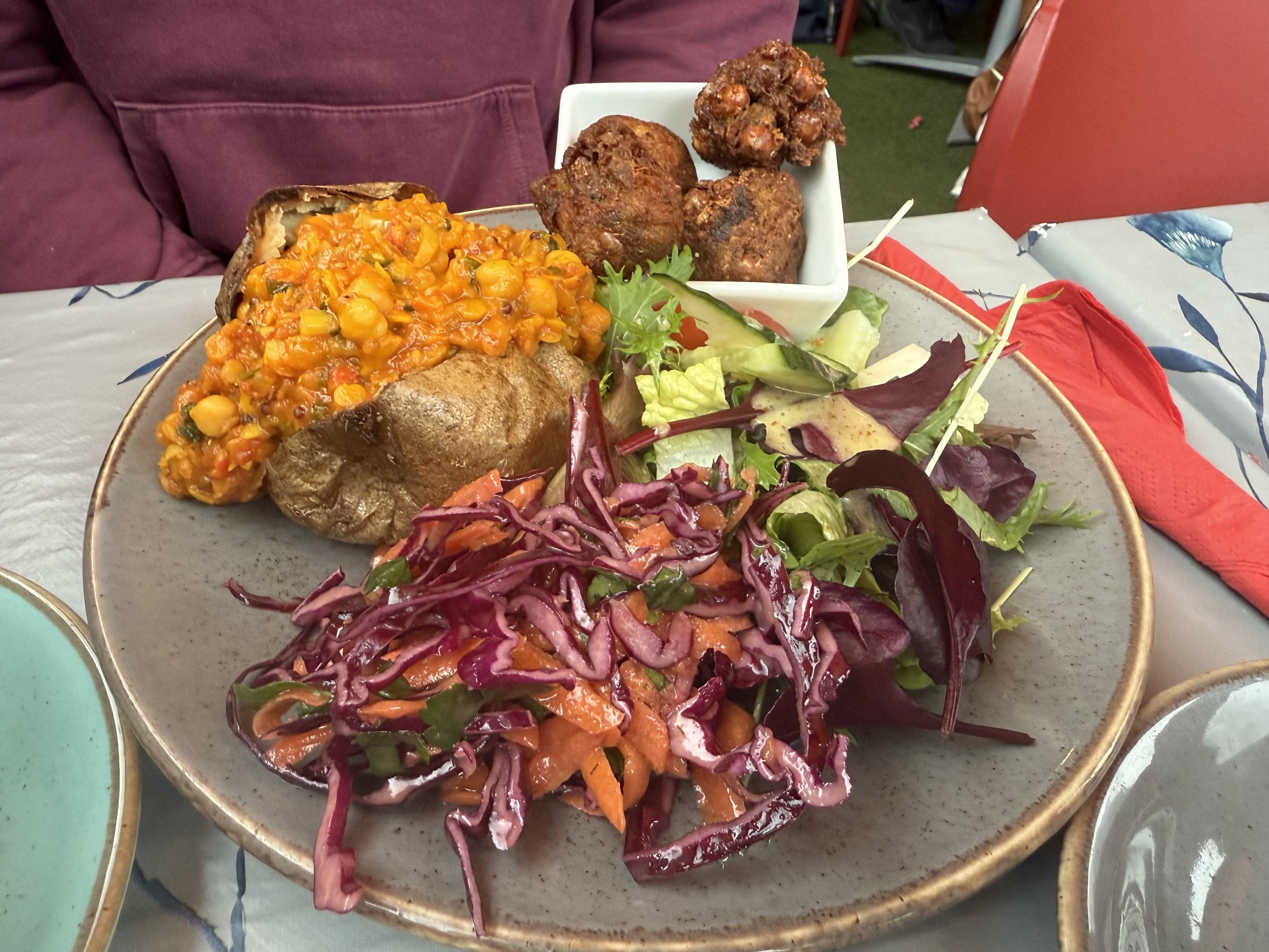 new vegan menu items at Coffee Sack! We both tried the new spiced dahl, on toast and on a jacket potato. It was well fit! I was saying to my wife, Coffee Sack is one of the only places where I'm never disappointed to see menu changes, cause every new thing they come up with is dee-lish
