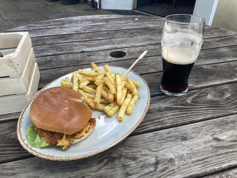 Just had a Guinness and a very tasty vegan 'Thai' burger from the lunch menu at The Same Yet down Simister Lane - they also had a vegan chickpea and cauliflower curry on their specials! And their staff were very friendly, too.